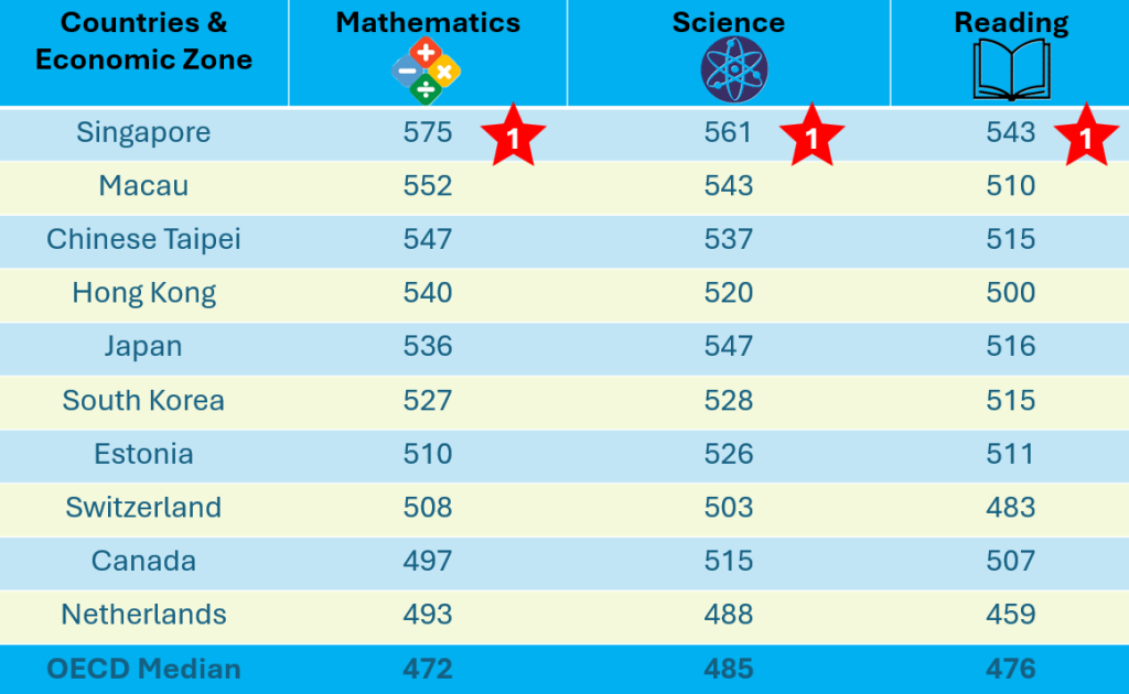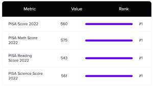 As with previous years, Asian countries stand tall when it comes to PISA scores, with five regions – Singapore, Macau, Taiwan, Japan, and South Korea – occupying the top five positions.